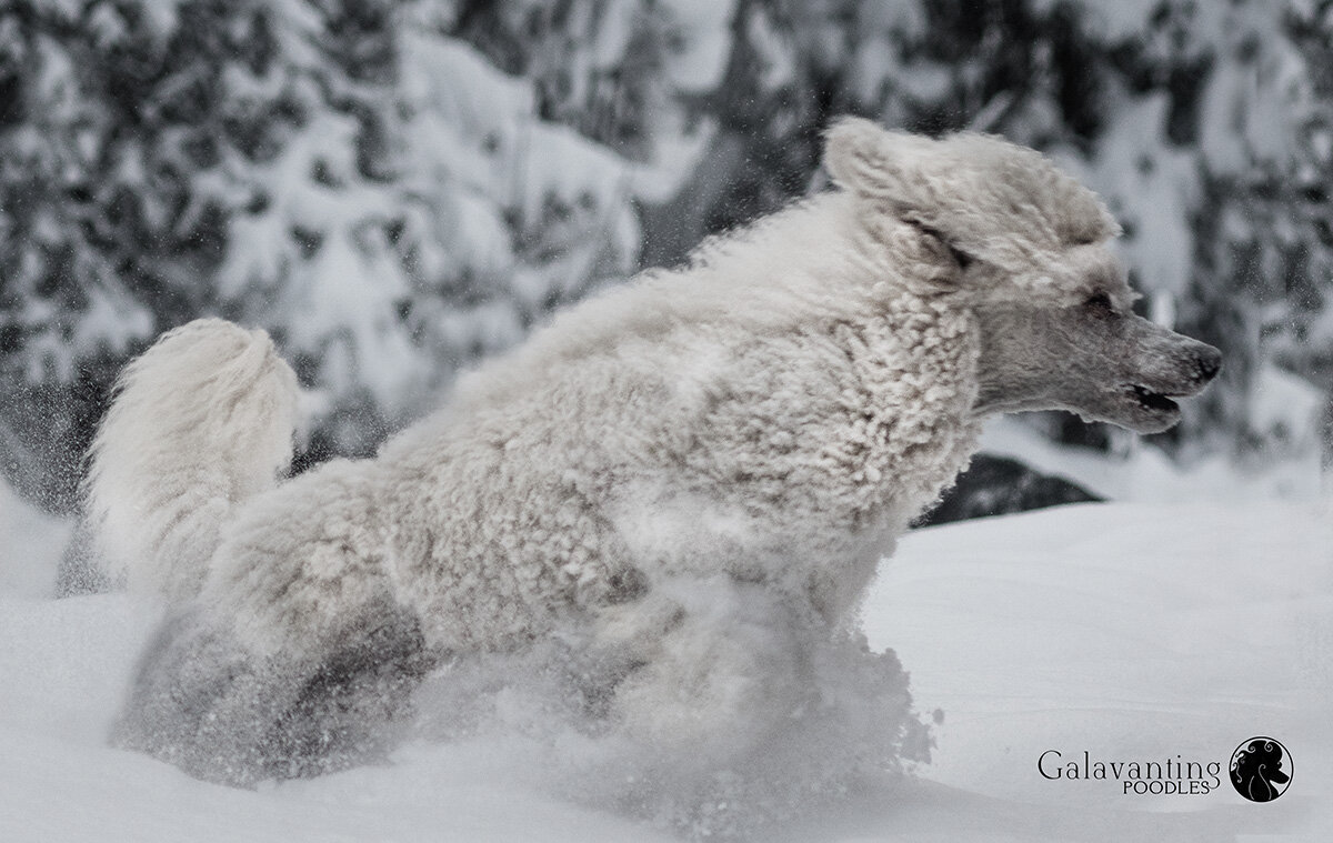 Nothing phases Standard Poodle Kluane. Winter is her favorite season!